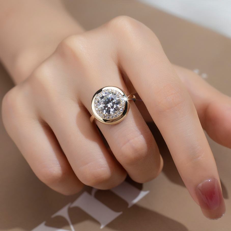 Bague en moissanite Messi Jewelry MSR-1135 9K 10K 14K 18K DEF, coupe ronde brillante, bague de fiançailles, alliance, bande classique, cadeau