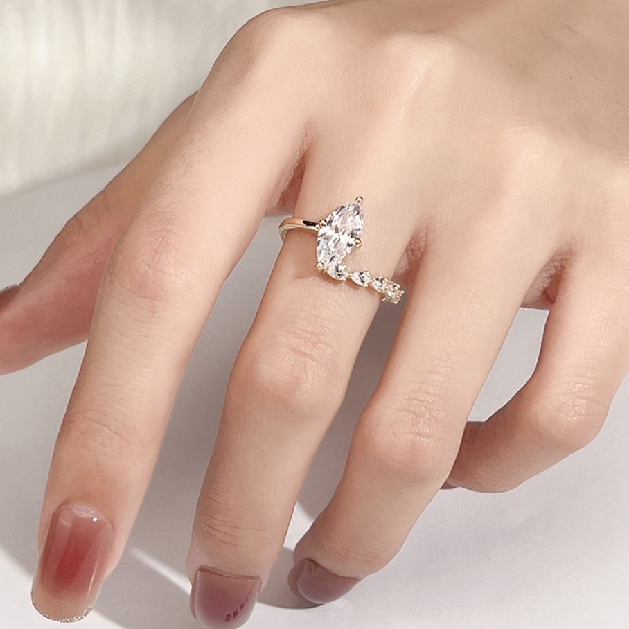 Bague de fiançailles Messi Jewelry MSR-1141 en or 9K 10K 14K 18K, bague en moissanite taille marquise DEF, alliance de mariage, bande de diamant classique, cadeau