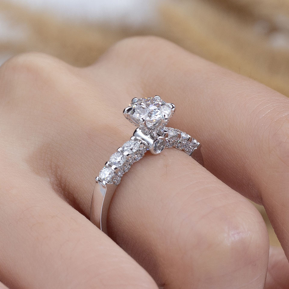 Bague pour femme Messi Jewelry MSR-2034 PT950 avec diamant de laboratoire de forme ronde