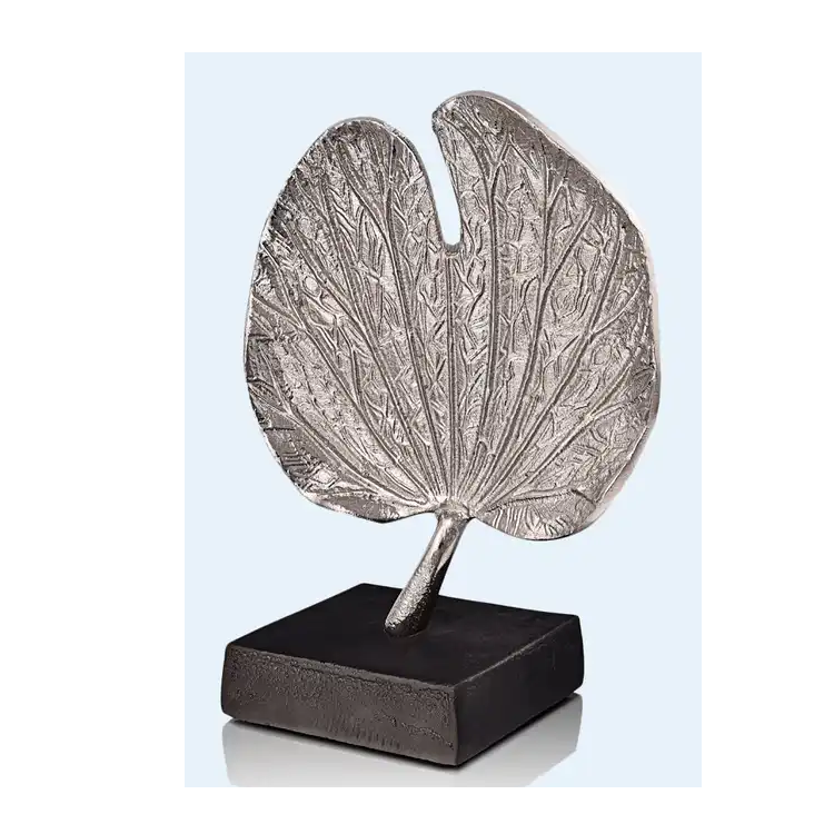 Sculpture abstraite en métal Figure ornement de table Sculpture de feuille en métal plaqué argent pour salon, bureau et décoration de maison