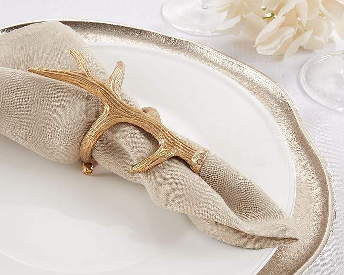 Anneaux de serviette en bois de cerf en métal (lot de 4), couleur or DE MZ INTERNATIONAL