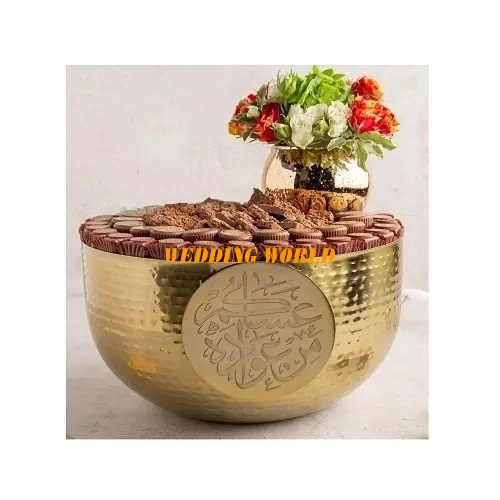 Bol à chocolat martelé en or avec pièce de monnaie arabe de forme ronde, bol à bonbons de luxe, bol à chocolat fantaisie pour la table de Ramadan