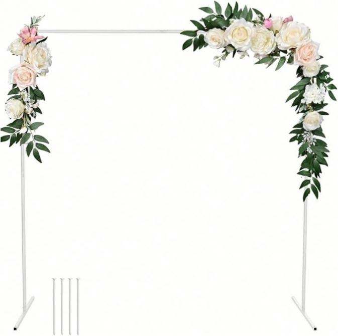 Support de toile de fond métallique avec pieds de support, cadre de tonnelle de jardin, structure de toile de fond en tuyaux et drapés