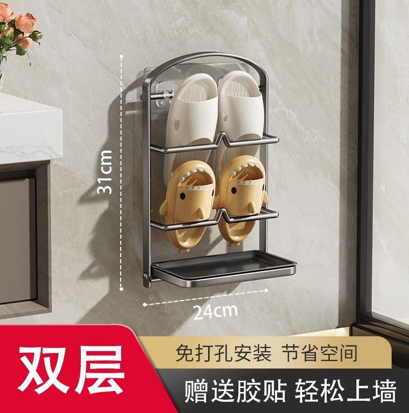 Étagère de rangement en métal pour pantoufles de salle de bain Étagère à chaussures murale multicouche avec bac de drainage Étagère de rangement pour chaussures de porte