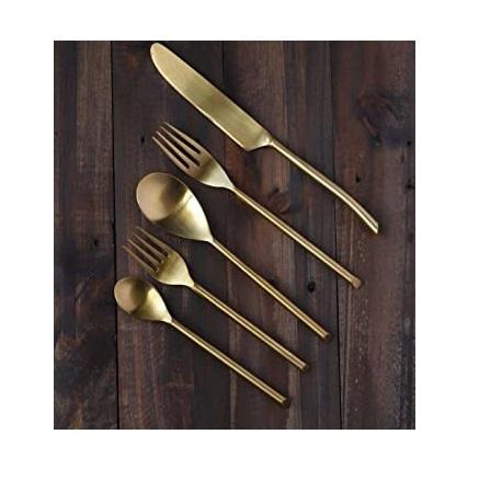 Ensemble de couverts en métal et laiton, Design de gravure, ensemble de couverts en métal, fourchette dorée, cuillère, couverts de cuisine de luxe