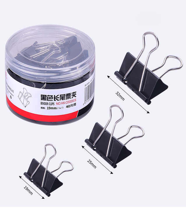 Clips bouledogue en métal pour papier à usage de bureau 24PCS Pack Small Medium Large Black Colored Binder Clips