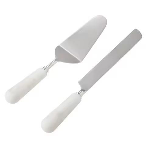Ensemble de couteaux à gâteau en métal de luxe avec manche en marbre, outils à gâteau faits à la main écologiques, compatibles lave-vaisselle