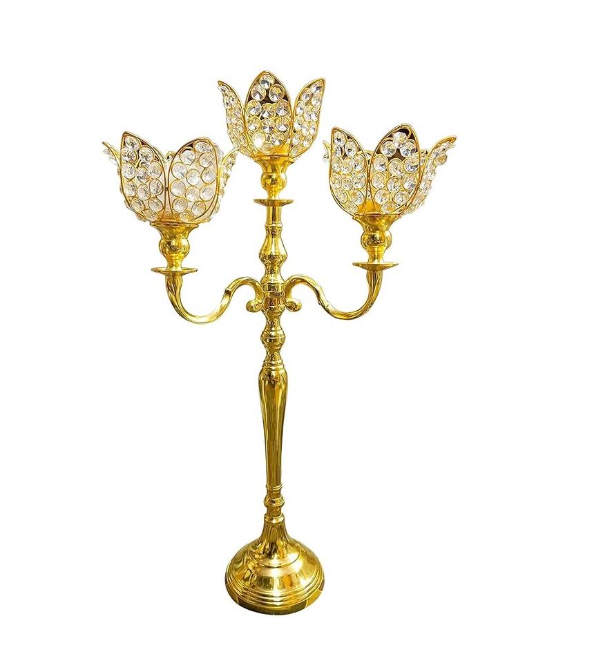 Metal Candle Holder For Table Decoration With Bright Shiny Finish And Handcrafted Modern Artistic Appeal