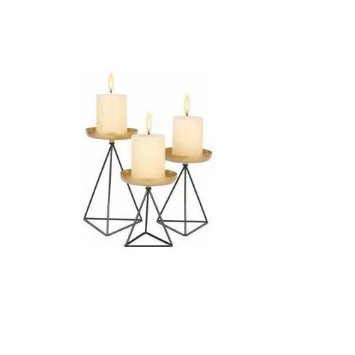Bougeoir en métal pour décor élégant Lot de 3 bougies de forme et de taille personnalisées, dorées et polies.