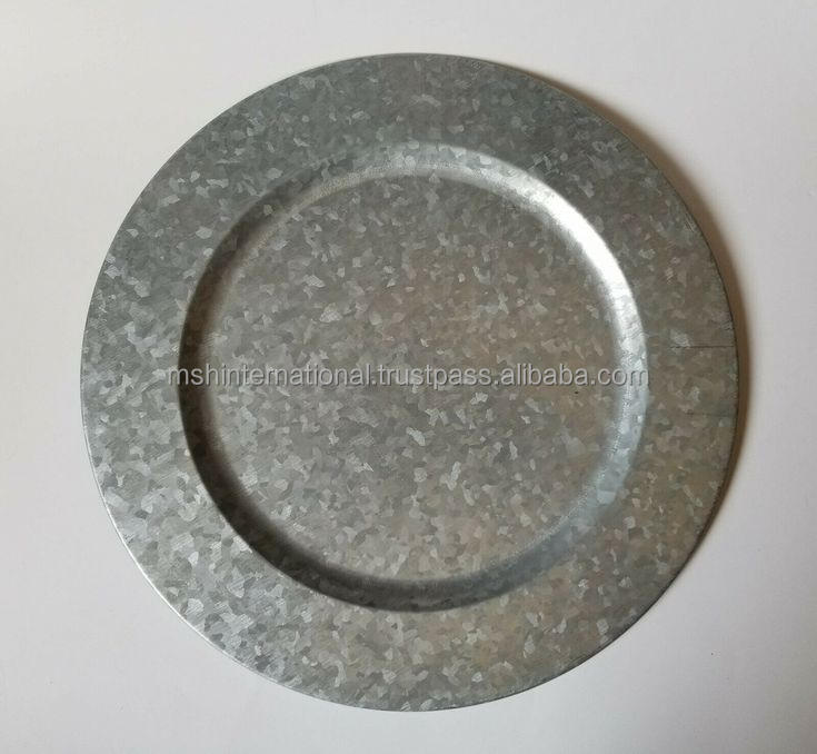 Assiette de Chargeur en Métal de Forme Ronde de Haute Qualité, Designer Élégant, Vente en Gros d'Assiette de Chargeur Galvanisée pour Dîner