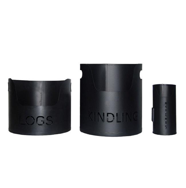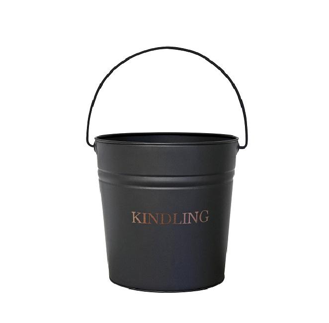 Seau de stockage de charbon en métal dans un fini enduit de poudre noire galvanisé parfait pour l'accessoire de foyer domestique et extérieur