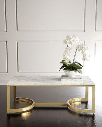 Table basse en métal avec finition dorée et plateau en marbre pour le salon