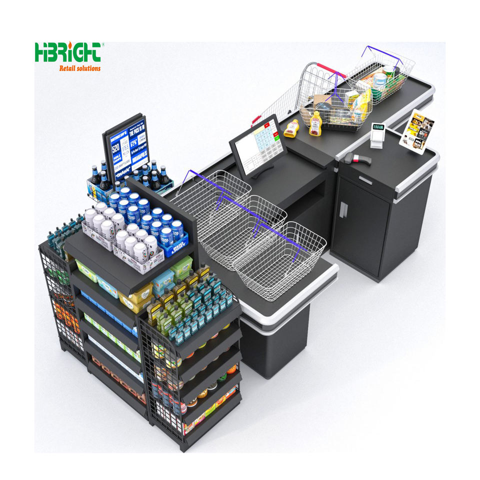 Comptoir de caisse en métal pour magasin de détail, comptoir de caisse en métal pour supermarché, utilisé