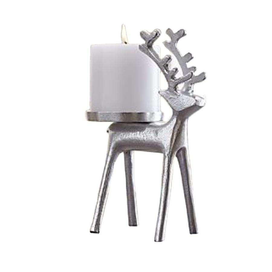 Metal Crafts Christmas Reindeer Sculpture Silver Reindeer Candle Stand For Table Decoration Accessories Aluminium Elegant Deer