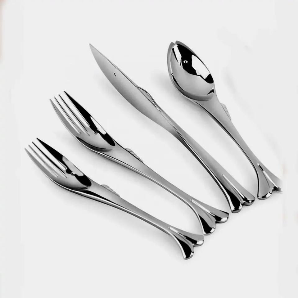 Ensemble de couverts en métal, collection de couverts contemporains, durables et portables, finition super miroir pour une utilisation moderne en cuisine, en fête ou comme cadeau