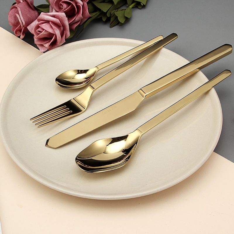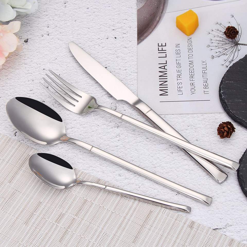 Ensemble de couverts en métal avec différents motifs adaptés à l'esthétique minimaliste des cuisines, appartements, restaurants, hôtels