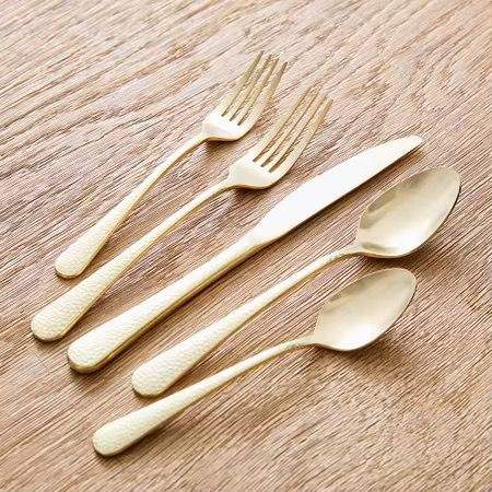 Ensembles de vaisselle décoratifs en métal faits à la main Vaisselle en acier inoxydable dorée Ensemble de fromage à poignée en résine blanche