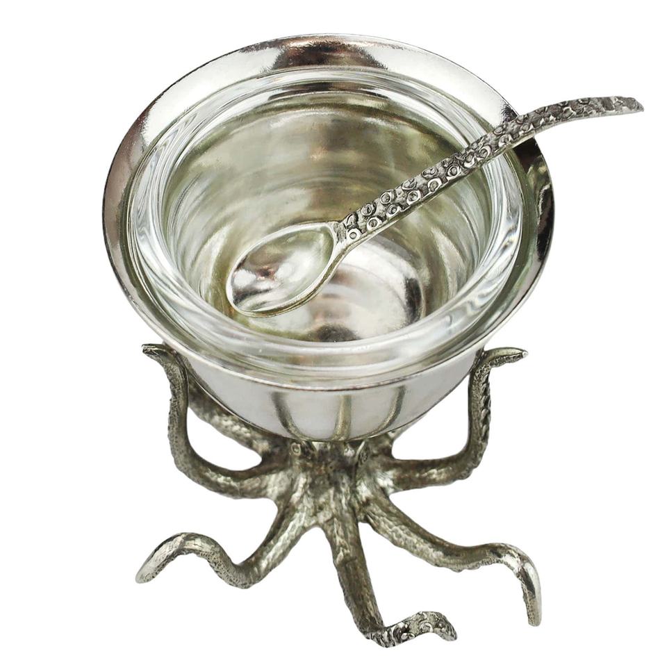 Bol à pieuvre décoratif en métal plaqué or Nouveau design Bol à fruits en aluminium Table à manger Centre de table Bol à forme ronde avec pieuvre