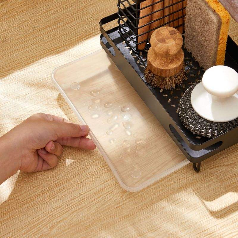 Porte-éponge en métal pour évier de cuisine blanc noir avec bac de vidange pour comptoir