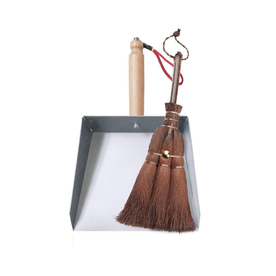 Ensemble pelle à poussière et brosse en métal, balai à poils naturels fait à la main, porte-poussière de mini taille