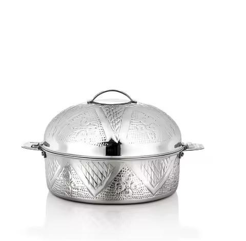 Metal Embossed Design Glass Hot Pot Handmade Serving Cookware with Unique Rounded Shape
