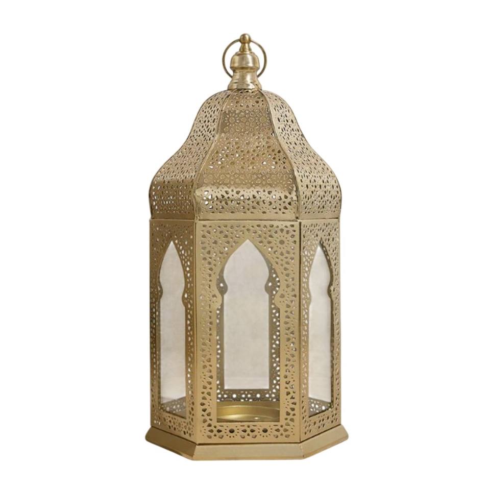 Lanterne en métal gaufré, style marocain vintage, finition dorée, faite à la main, durable, écologique, porte-bougie, décoration d'intérieur, mariage, Ramadan