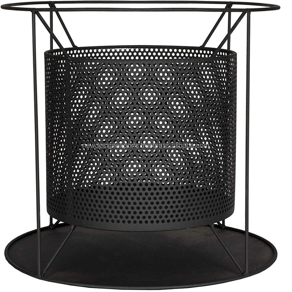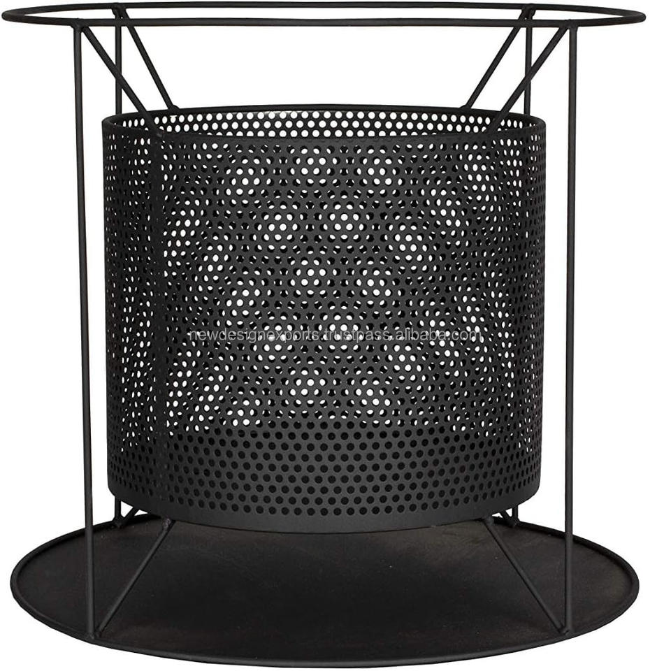Brasero en métal avec écran anti-étincelles, noir, design perforé, foyer extérieur rond avec support
