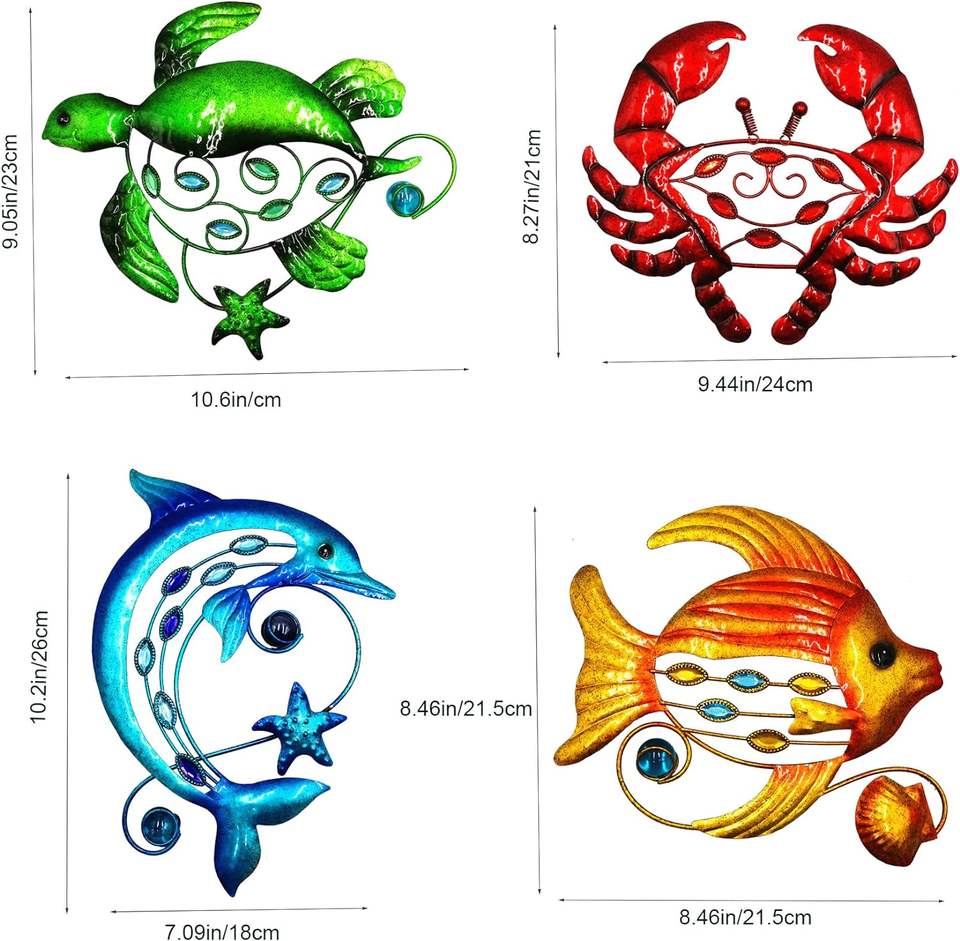 Décoration murale poisson en métal, tortue de mer et crabe Art salle de bain décor dauphin décoration murale ferme et art mural extérieur coloré