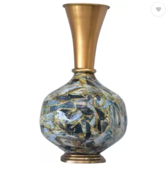 Vase à fleurs décoratif en verre et en laiton artisanal
