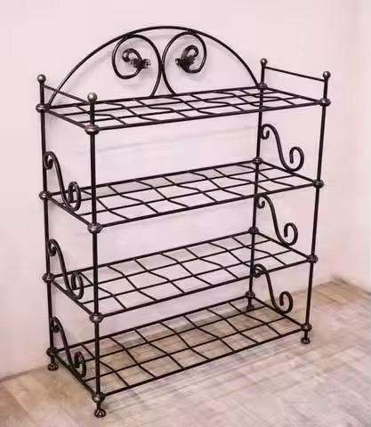 Organisateur de chaussures en métal à quatre niveaux, étagère de rangement en fer forgé avec décorations sculptées, support pour chaussures d'entrée et de maison
