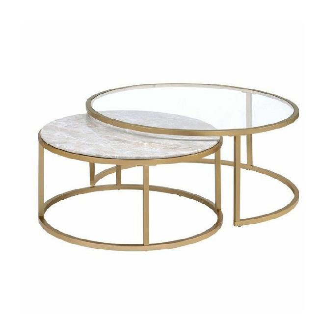 Table basse avec cadre en métal, meubles modernes, Table d'angle ronde décontractée, plateau de thé et de jus en ardoise, pieds dorés ronds, utilisation en marbre