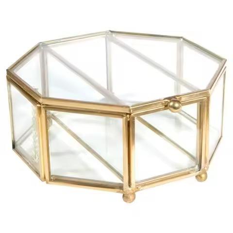 Boîte à bijoux en métal avec cadre en verre, boîte à bijoux de haute qualité, artisanale, décorative, de luxe