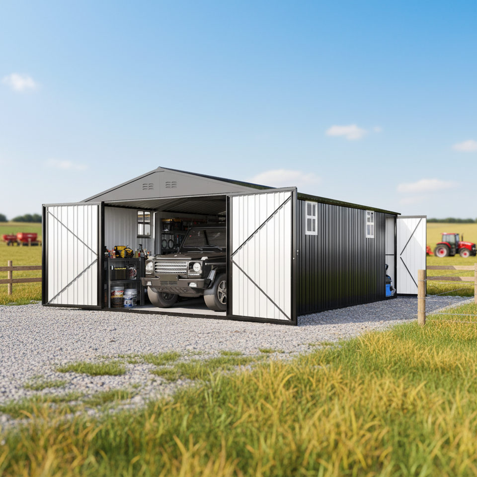 Abri de jardin en acier préfabriqué pour 2 voitures, grand abri de jardin en acier galvanisé robuste avec toit