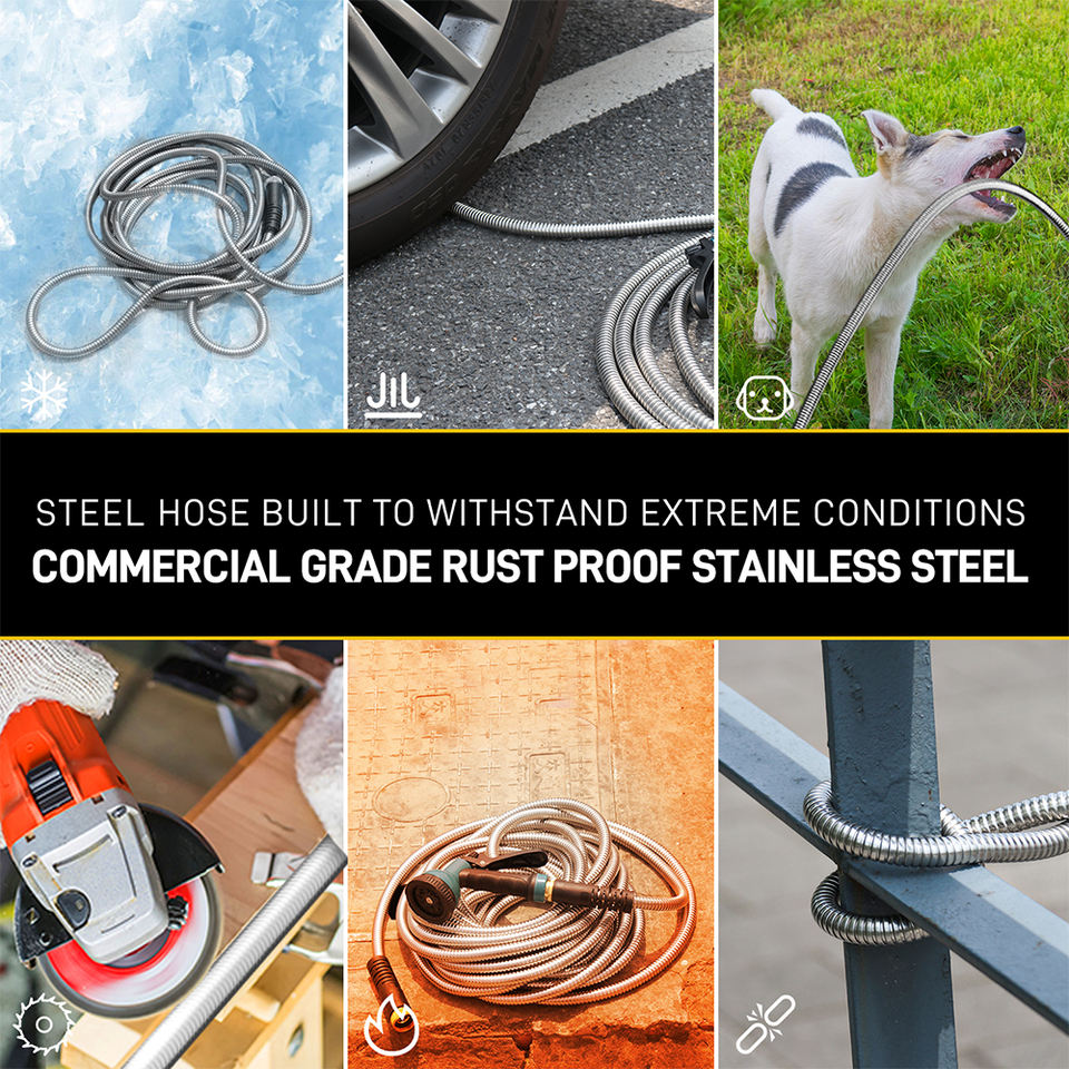 Tuyau d'arrosage en métal Tuyau d'arrosage en acier inoxydable de conception résistante de 75 pieds avec raccord solide et tuyau d'extérieur durable et léger
