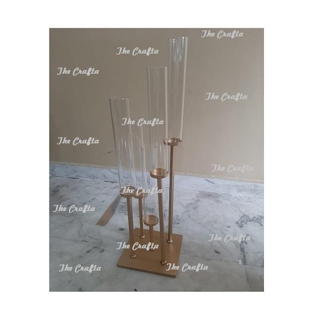 Pièce maîtresse en métal couleur or avec cheminée en verre pièce maîtresse de mariage de taille et de forme personnalisées pour les meilleures ventes