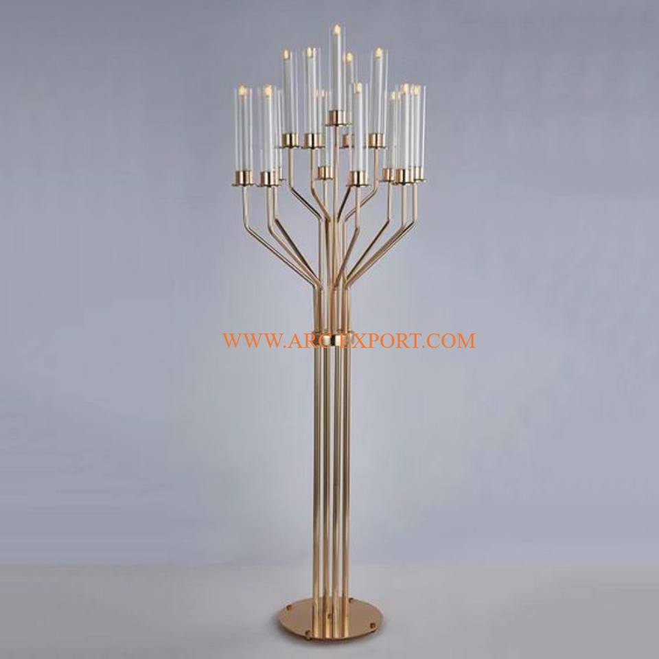 Décoration de table en métal doré poli Centre de table de mariage fait à la main Centre de table en métal et verre éclaircissant