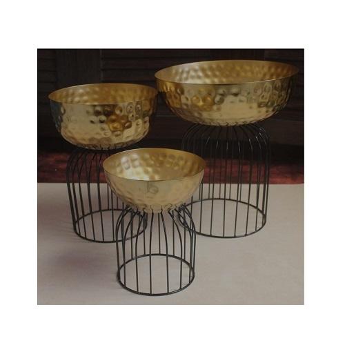 Bol à chocolats martelés en métal avec support en fer Ensemble de trois tailles différentes Bol à dessert pour les meilleures ventes