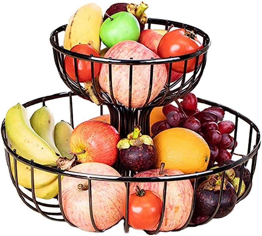 Panier de fruits et légumes en fer artisanal en métal couleur noire fini fer solide espace applicable salon cuisine chambre