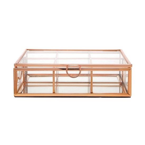 Boîte à bijoux hexagonale en métal Boîte de présentation décorative faite à la main finition argentée Boîte en verre de table de luxe de taille personnalisée