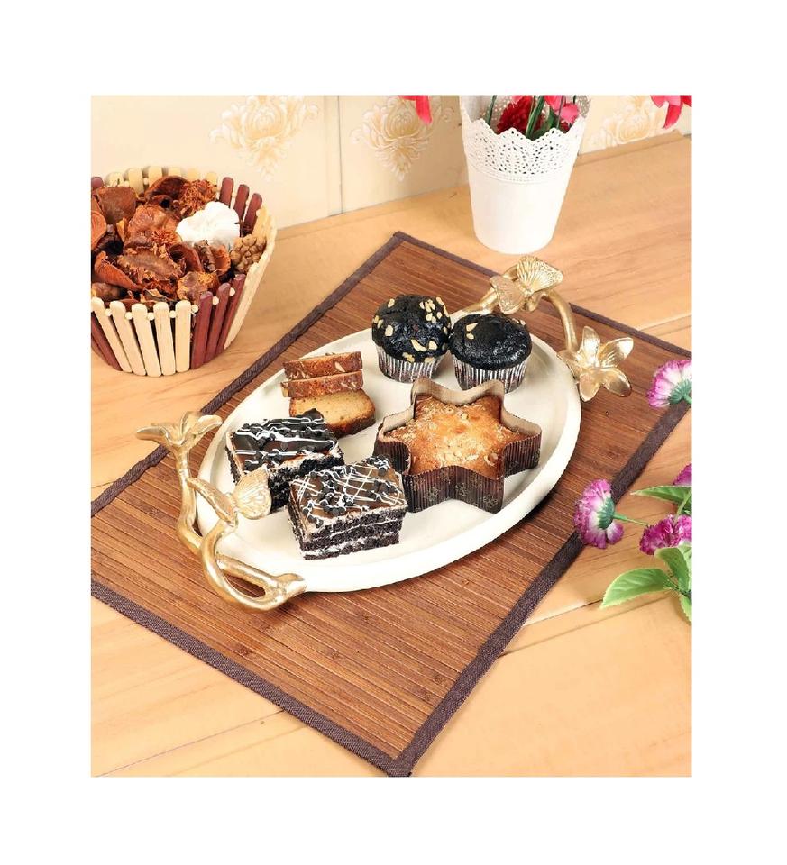 Plateau en métal de couleur blanche de haute qualité avec un Design de fleur dorée plateau de finition pour servir les Fruits