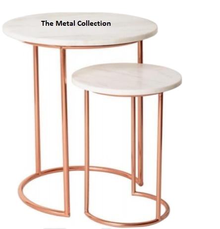 Ensemble de 2 pièces Table de meuble maison en métal, table pour salon, avec tabouret, rond, de couleur or, Design moderne, en fer