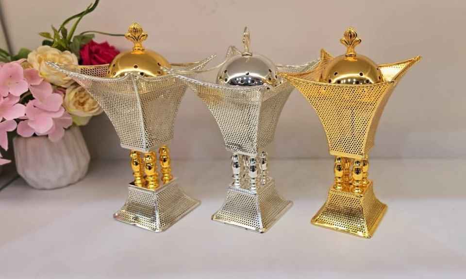 Metal Incense Burner Bakhoor Gold Plated Finish for Scented Engrave Design Incense Burner Hammered Design For Sale at Wholesale