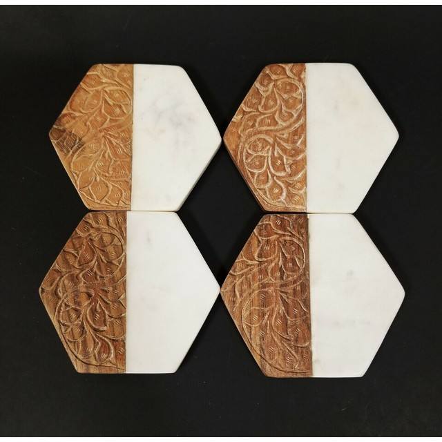 Sous-verre carré en métal incrusté de marbre Sous-verre en pierre de luxe pour tasse à thé Sous-verre en pierre et incrustation en métal Taille personnalisée