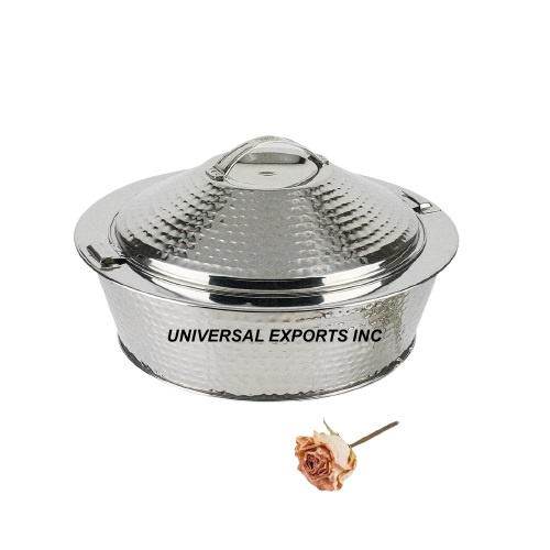 Casserole en acier inoxydable à double paroi Forme ronde Faite à la main Casserole design Classique Élégant Fait à la main Réchauffeur de nourriture de luxe en métal