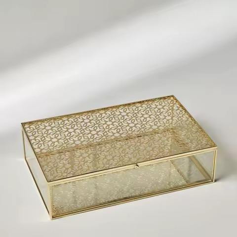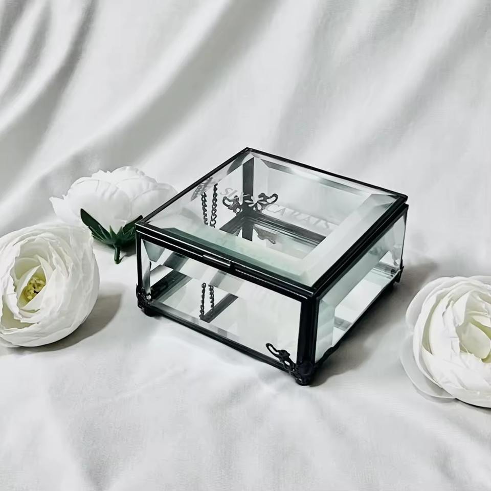 Boîte de rangement pour bijoux en métal avec base miroir, élégant organisateur de bijoux, rangement d'accessoires