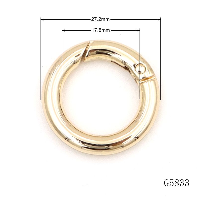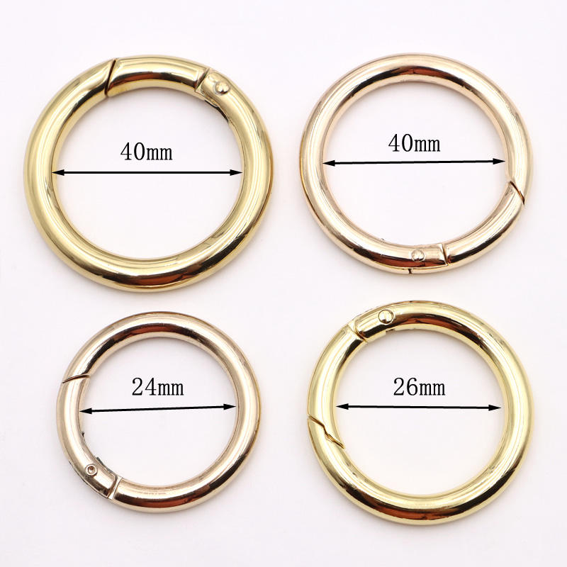 Accessoires de porte-clés en métal, mousquetons ronds plaqués or, mousquetons à ressort pour sacs à main