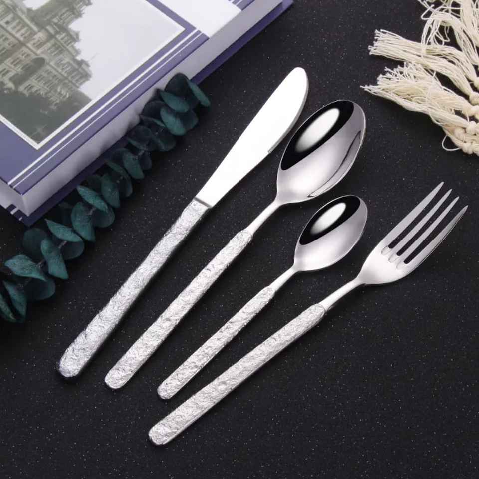 Ensemble de couverts de cuisine en métal martelé, nouveau design, couleur argent, design moderne, en acier inoxydable, pour la cuisine, les repas et les événements