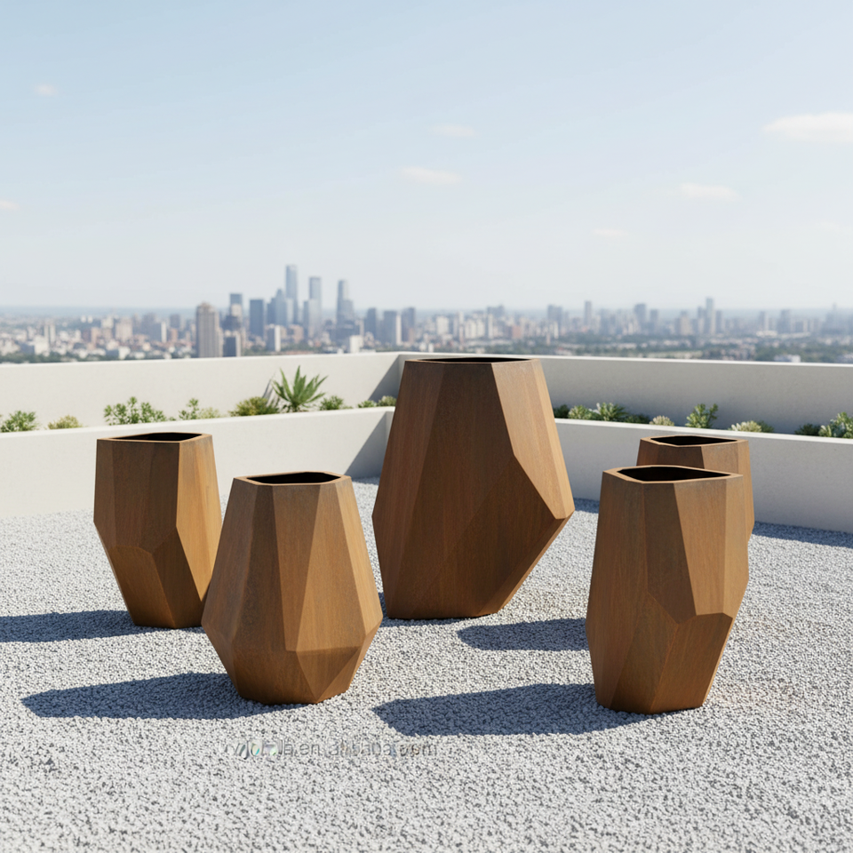 Nom du produit:Grande boîte à fleurs en métal découpé au laser, pots de fleurs en acier Corten