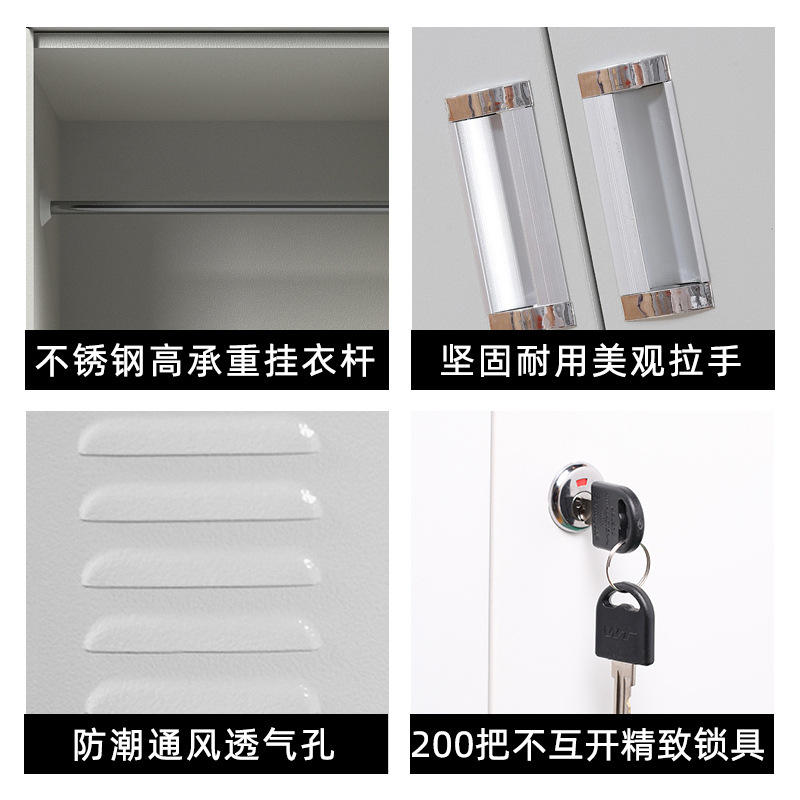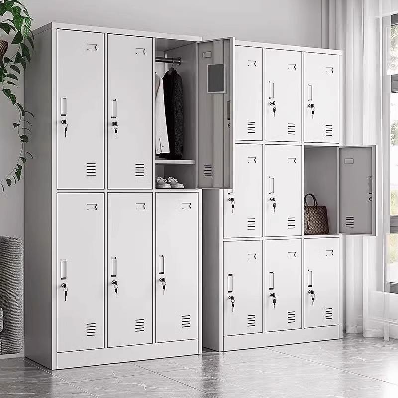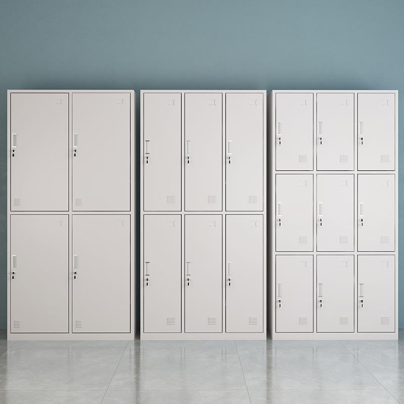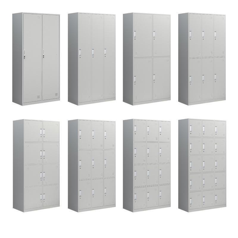 Casier métallique avec serrure, 3 niveaux, type vertical, rectangulaire, pour organiser et ranger les vêtements, pour usage professionnel des employés.