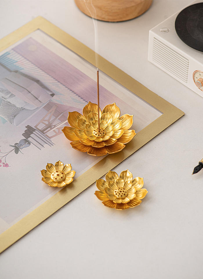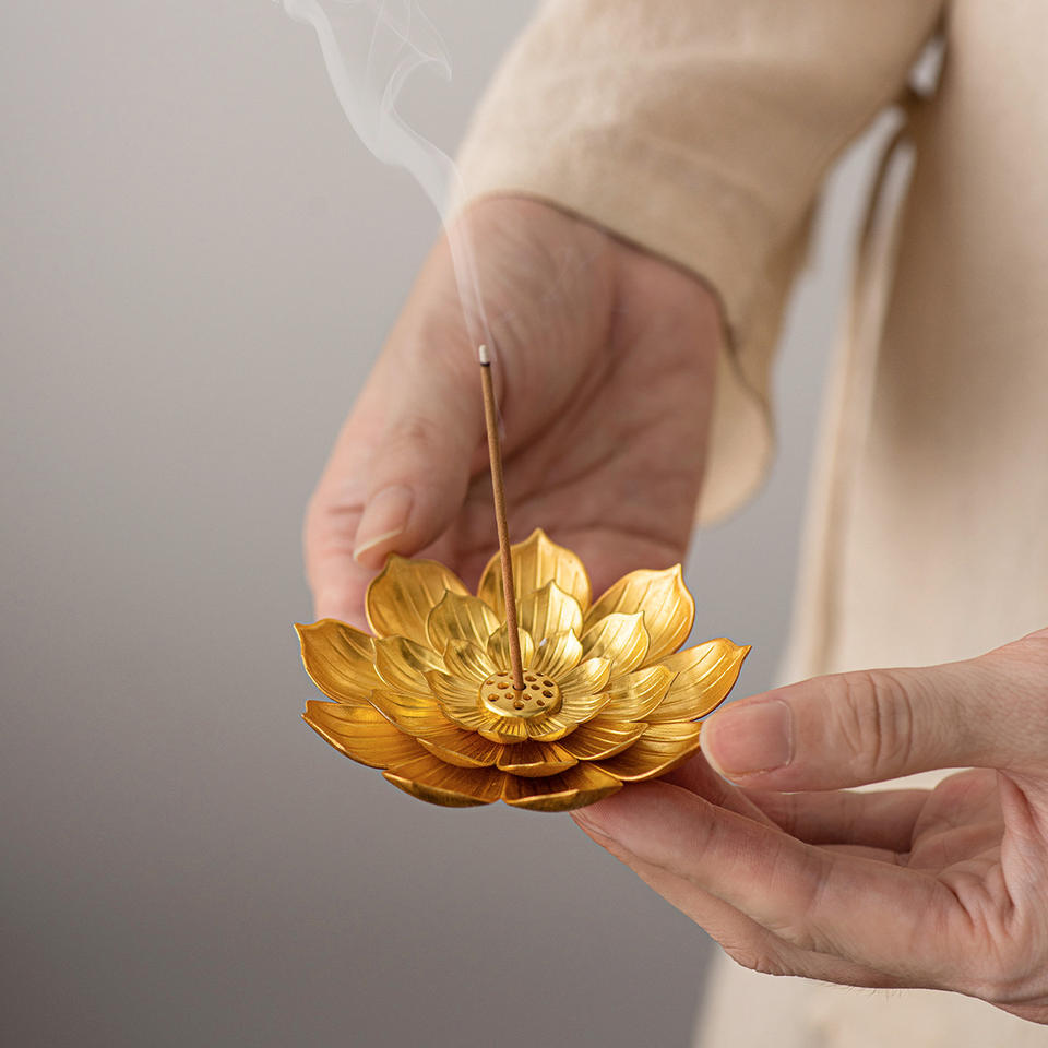 Brûleur d'encens en métal avec motif lotus en relief, mini brûleur d'encens pour bâtonnets de santal, encensoir pour offres religieuses du Moyen-Orient